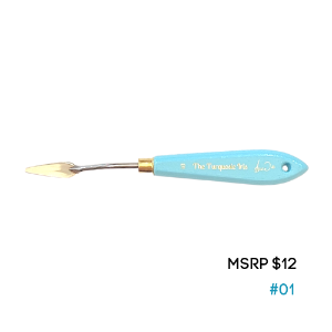 The #01 Palette Knife from The Turquoise Iris Collection is a reliable tool for your creative projects. Its high-quality stainless steel blade measures 1 1/4" x 1/2", making it a perfect choice for adding texture and dimension to your artwork.