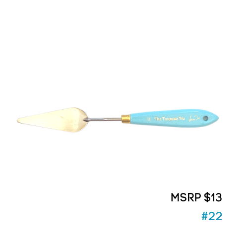 The #22 Palette Knife from The Turquoise Iris Collection is a professional-grade tool. It features a robust blade made from stainless steel and measures an impressive 3 1/4" x 1 1/8". Ideal for mixing and blending, the #22 Palette Knife assures a smooth result without any of the frustration.