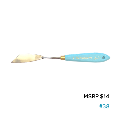 The #38 Palette Knife from The Turquoise Iris Collection is designed with a 1 3/4″ x 7/8″ blade size, perfect for fine detail work and intricate painting techniques. Perfect for artists of all skill levels, this high quality palette knife can help you create works of art.