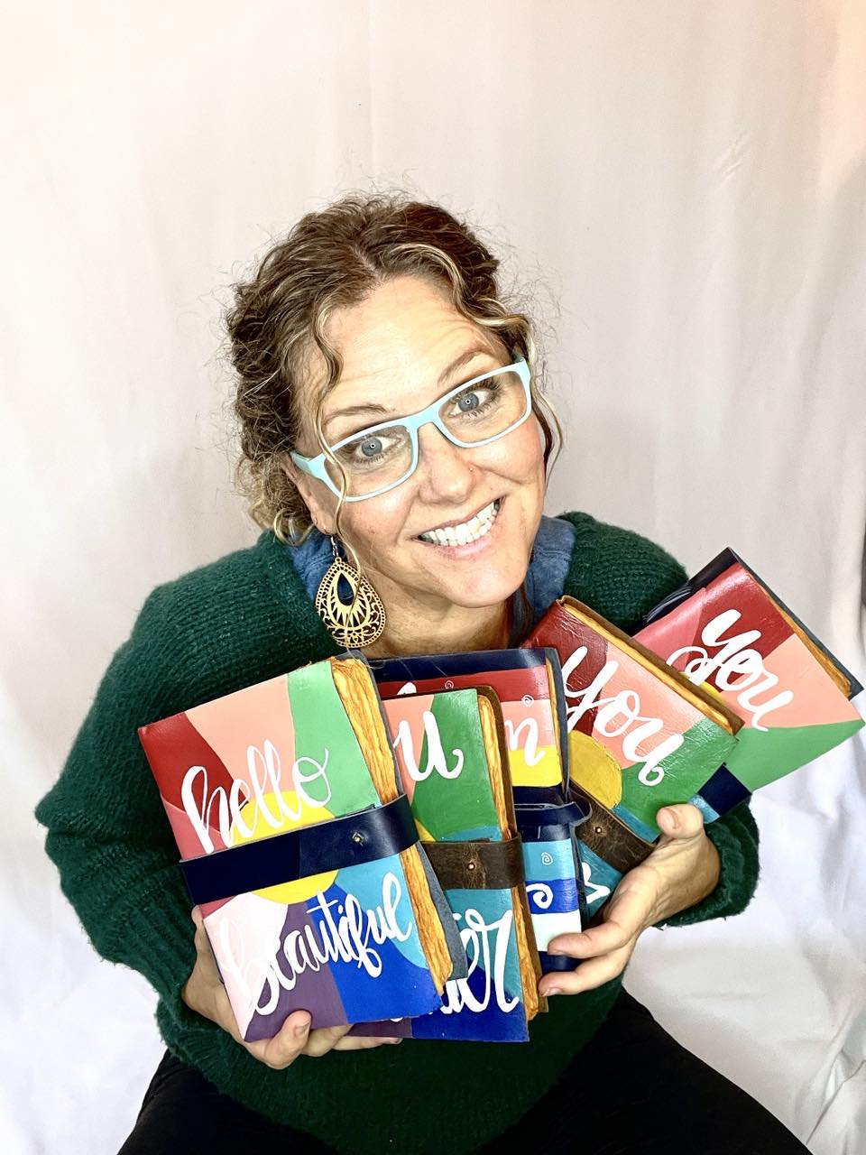 Beautiful hand painted all leather journals with deckle edged paper. 8X6